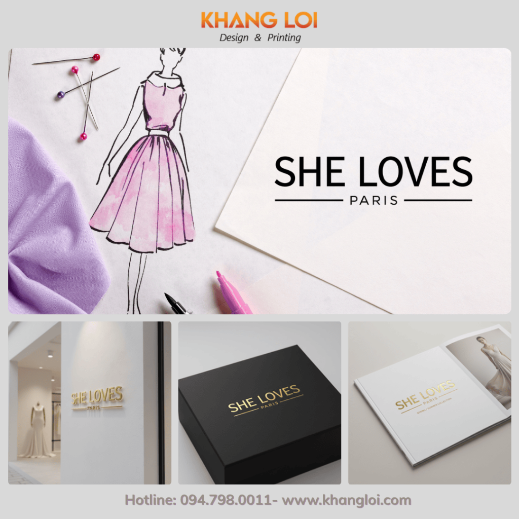 Hãy cùng phân tích một ví dụ điển hình về thiết kế tối giản nhưng giàu sức nặng: Logo “SHE LOVES PARIS”. Đây là minh chứng hoàn hảo cho triết lý thiết kế mà chúng tôi mang đến cho khách hàng.